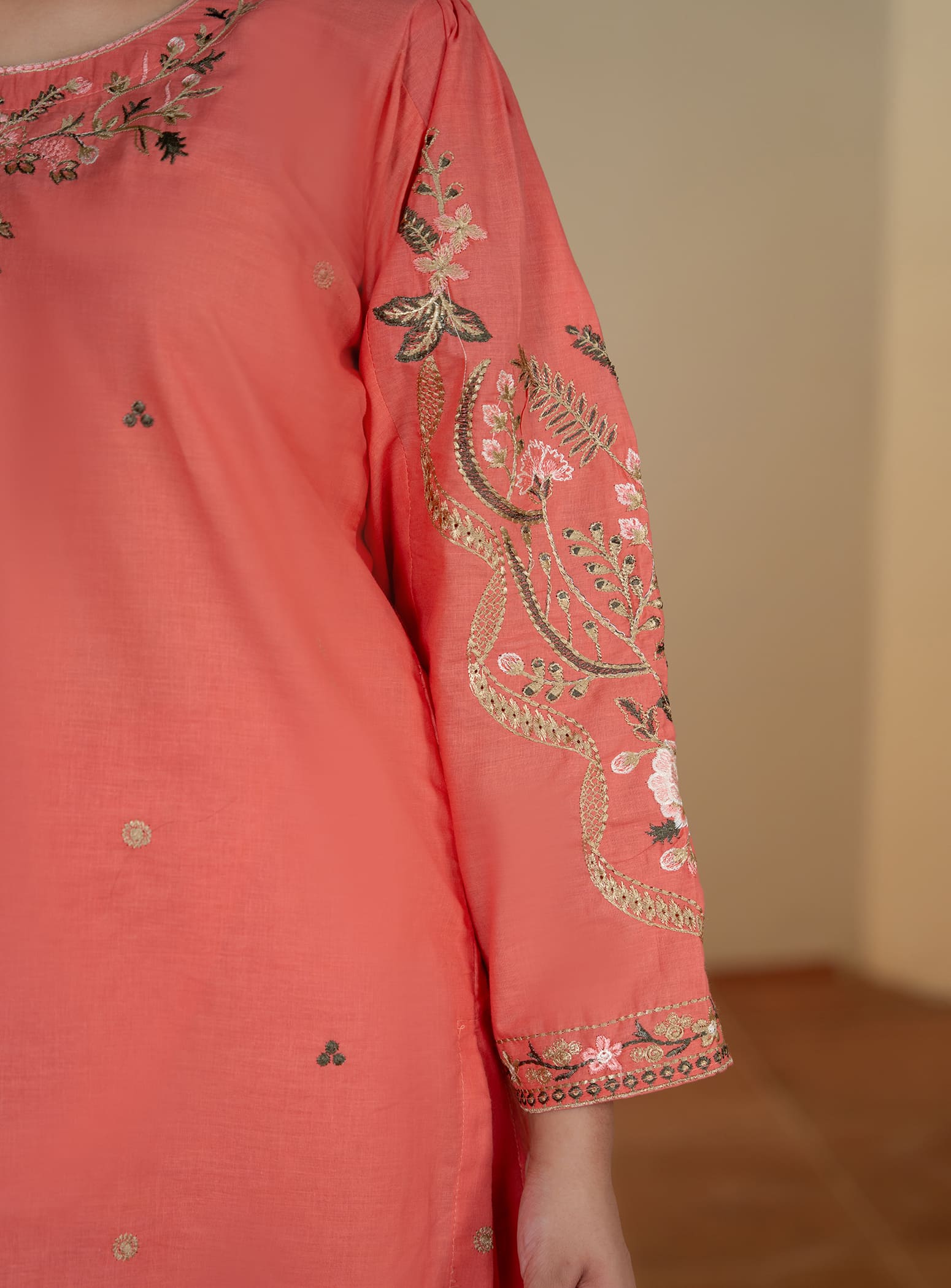 Made from soft cotton fabric, this straight kurta paired with straight trousers is delicately embroidered to bring charm and comfort together. The attached lining ensures a polished look, making it the perfect choice for daily summer wear.