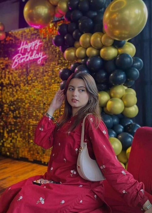 #AnabyaGarments #PetalEmb #2PieceSuit #LinenOutfit #RedKurta #EasternWear #DailyWear #AllSeasonWear #EmbroideredKurta #PakistaniFashion #ElegantStyle #NewArrivals