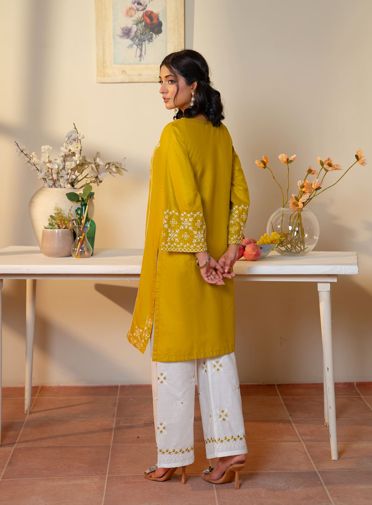 Bring sunshine to your wardrobe with the Yellow 3-Piece Cotton Kurta Set by Tawakal Closet. ☀️